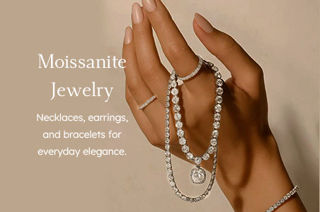 Explore our collection of moissanite jewelry, including necklaces, earrings, bracelets designed for everyday elegance. Each piece features carefully selected moissanite stones that offer lasting brilliance and a refined, diamond-like look.