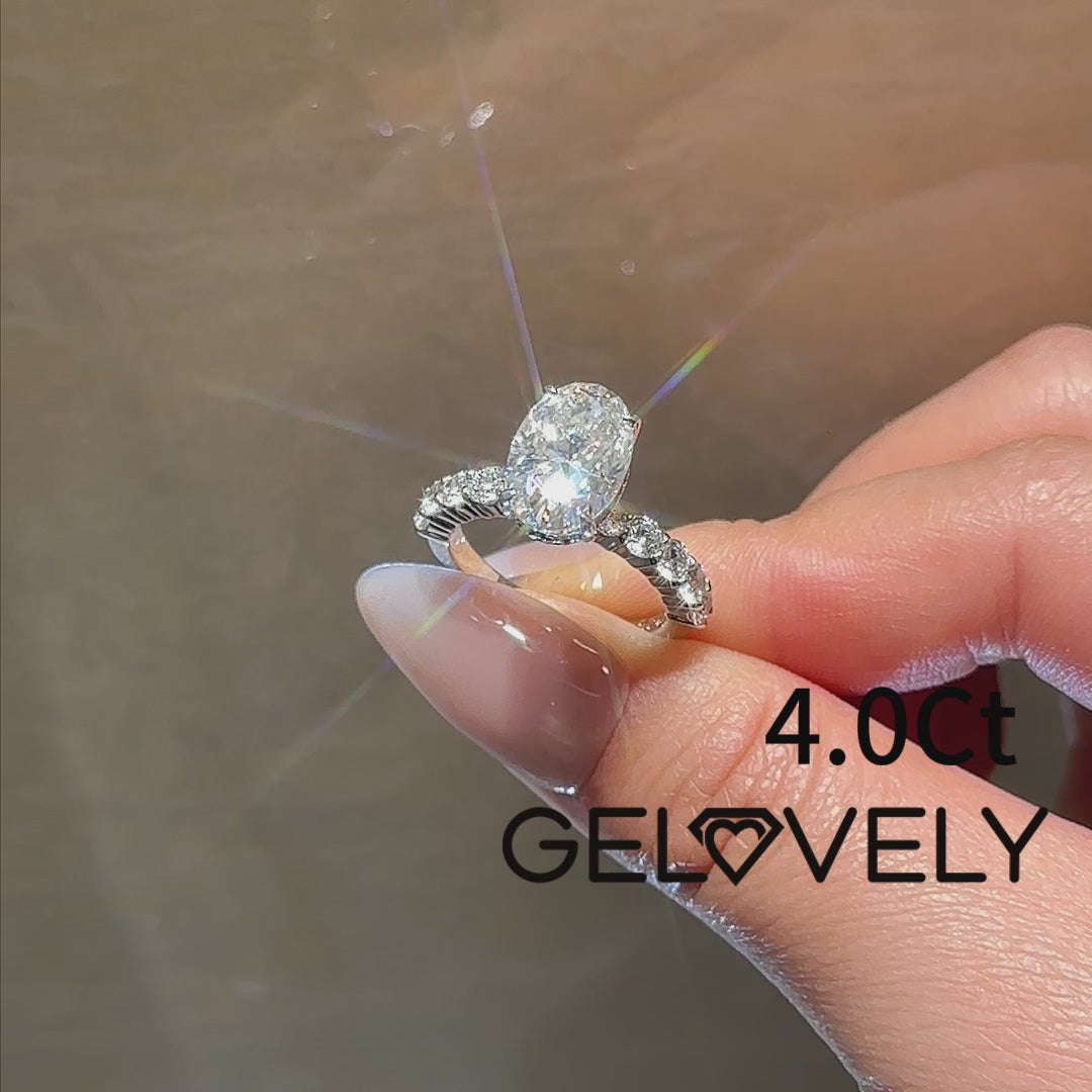 4.0Ct Oval Cut Hidden Halo White Gold Moissanite Diamond Engagement Ring