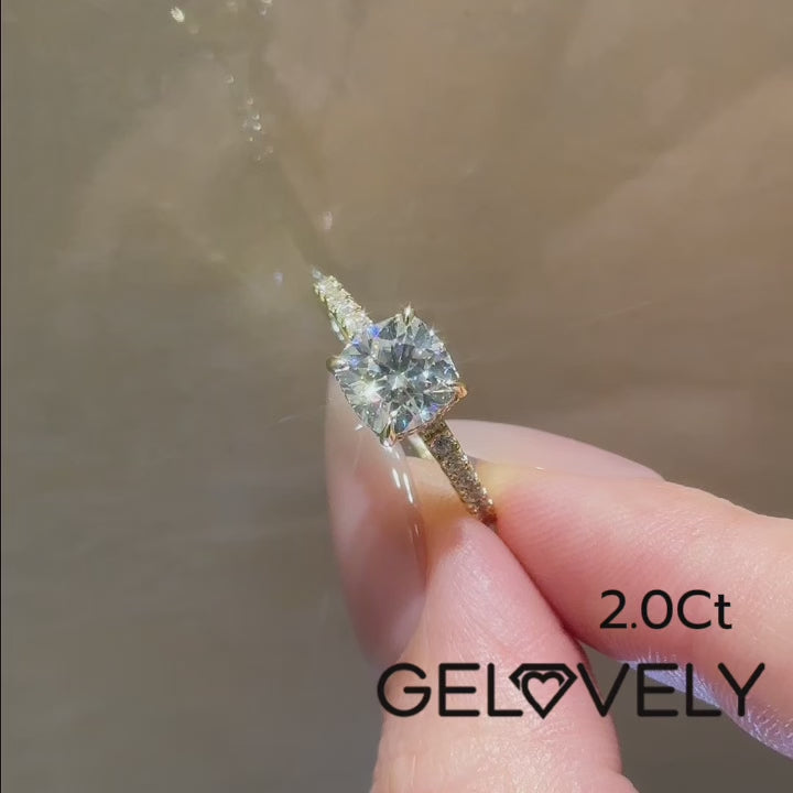 Gelovely Moissanite 2.0 Ct~2.5 Ct Square Cushion Yellow Gold Promise Ring