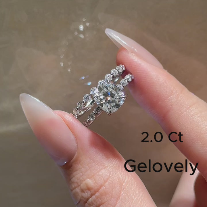 Designed for those who cherish elegance with a touch of modern romance, the Gelovely Moissanite 2.0 Ct Cushion Cut Wedding Ring Set embodies everlasting love and resilience. The cushion cut, known for its soft curves and captivating brilliance, symbolizes warmth and devotion, while the VVS1 D-color moissanite mirrors the clarity of a love that remains unshaken.