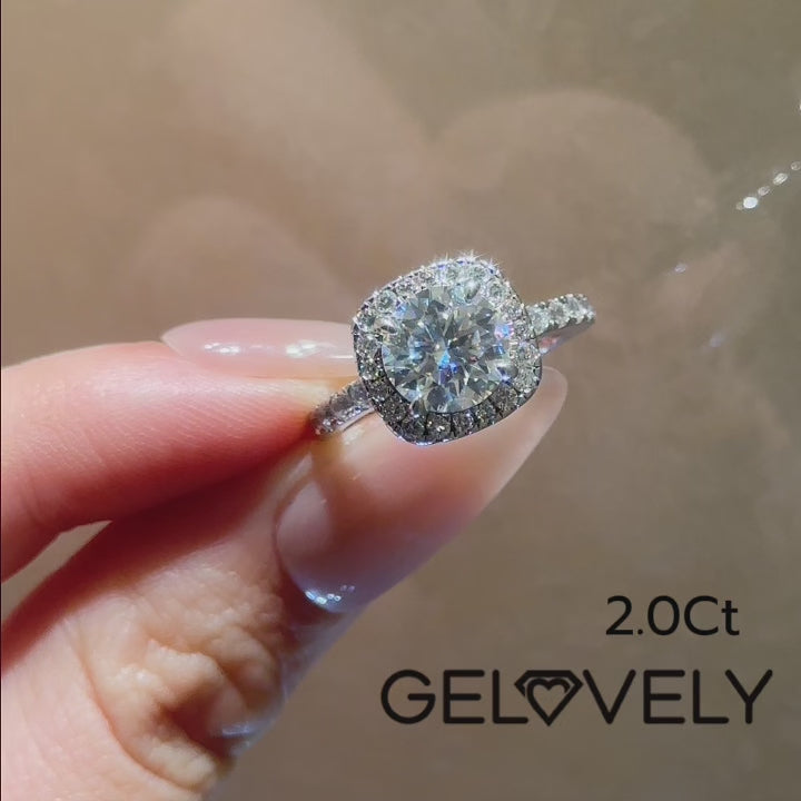 Gelovely Moissanite 2.0 Ct Halo Round Cut White Gold Promise Ring
