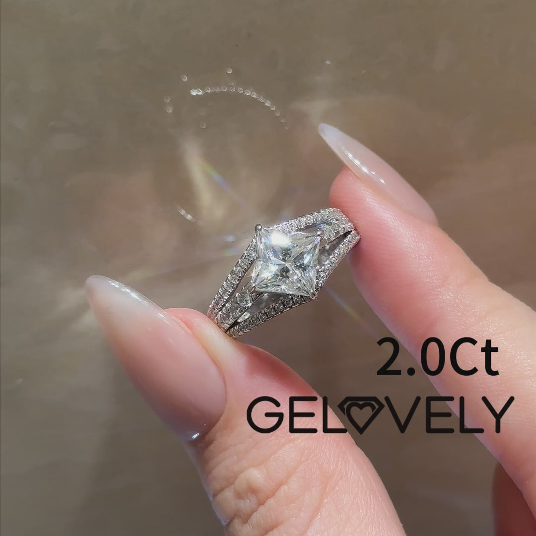 Gelovely Moissanite 2.0 Ct Princess Cut Travel Ring