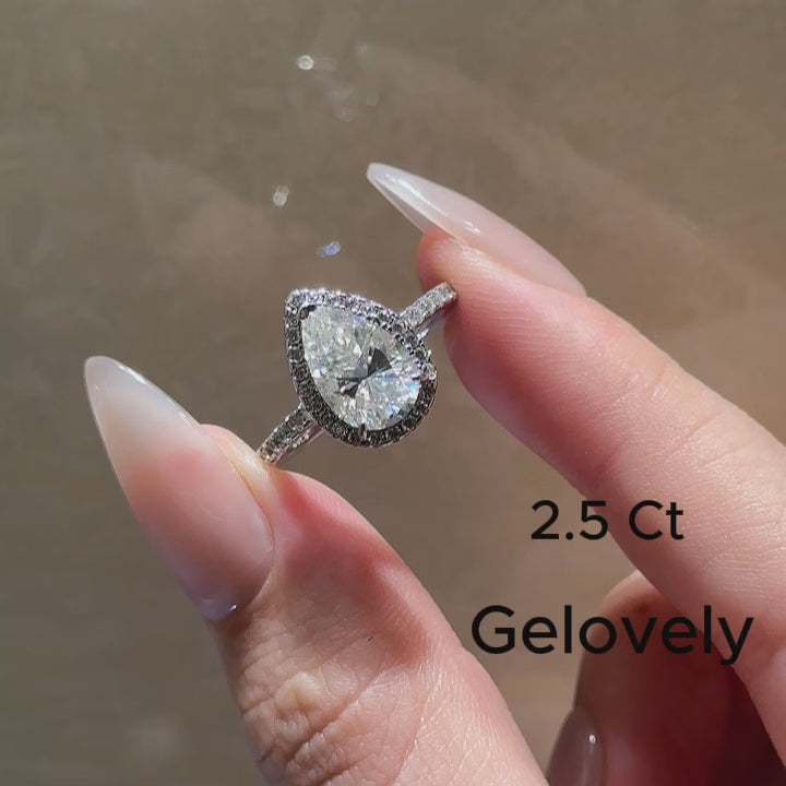 Gelovely Moissanite 2.5 Ct Pear Cut Halo Engagement Ring For Women