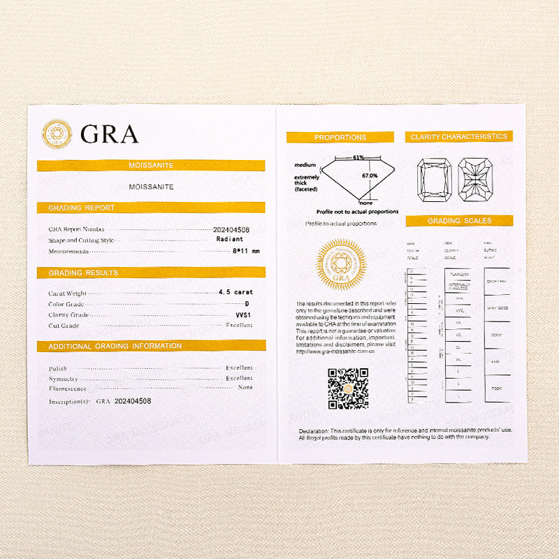 Design Inspiration: The Gelovely Moissanite 4.5 Ct Radiant Cut White Gold Engagement Ring draws inspiration from a blend of vintage and modern styles. Its radiant cut center stone offers brilliance and elegance, while the 8-prong setting adds a secure, antique touch. The use of moissanite provides an eco-friendly alternative to diamonds, and the choice between 18K white or yellow gold plating offers versatility for both contemporary and classic tastes. The design reflects a balance of timeless luxury and personal style.