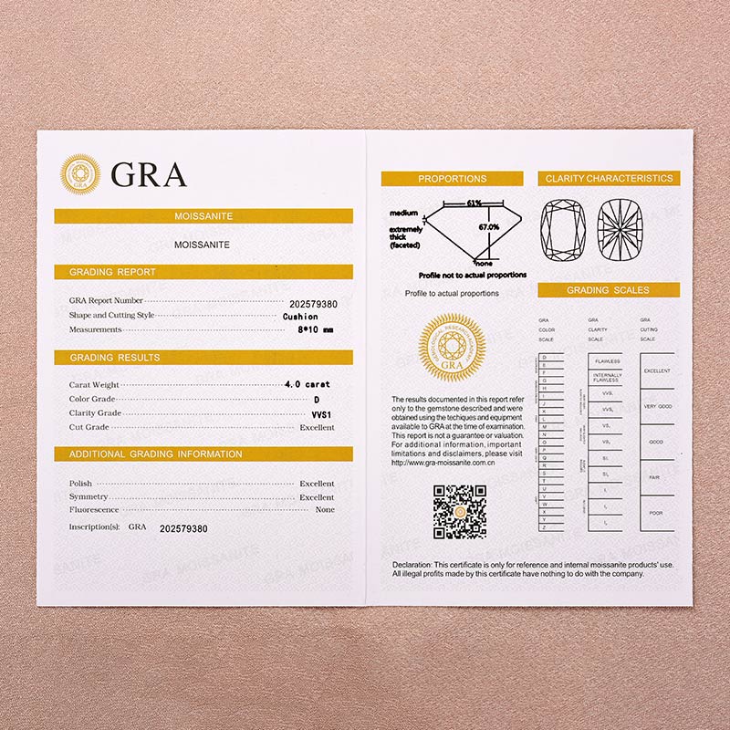 The cushion cut of the Moissanite stone offers a blend of classic elegance and modern flair, making it a popular choice for engagement rings. The 4-prong setting not only showcases the beauty of the stone but also ensures its security and durability.
