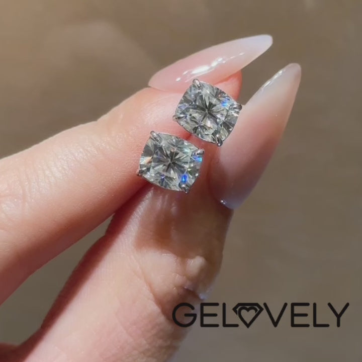 Design Inspiration: Our Gelovely Moissanite white gold 4 prong cushion stud earrings blend timeless elegance with modern luxury. The cushion-cut center stones, each weighing 2.0 carats, radiate brilliance and fire, creating a captivating sparkle. Set in 925 sterling silver with an 18K white gold plating, these earrings are not only exquisite but also durable and long-lasting. The four-prong setting adds a touch of sophistication, making them perfect for any occasion, from everyday wear to special events. Whether as a gift for a loved one or a treat for yourself, these stud earrings are a stunning choice that will be cherished for years to come.