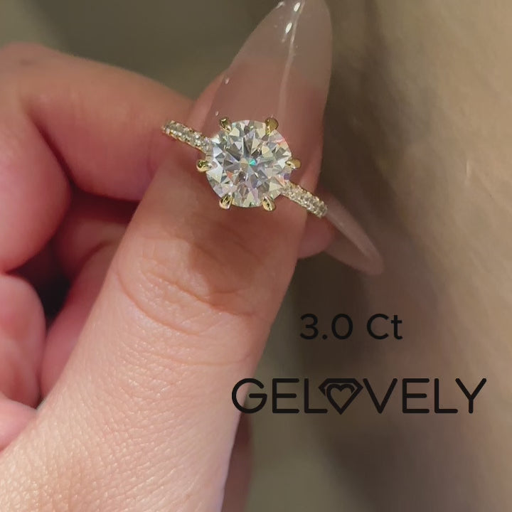 Gelovely Moissanite 3.0 Ct ~4.0 Ct Round Cut 6 Prong Yellow Gold Promise Ring