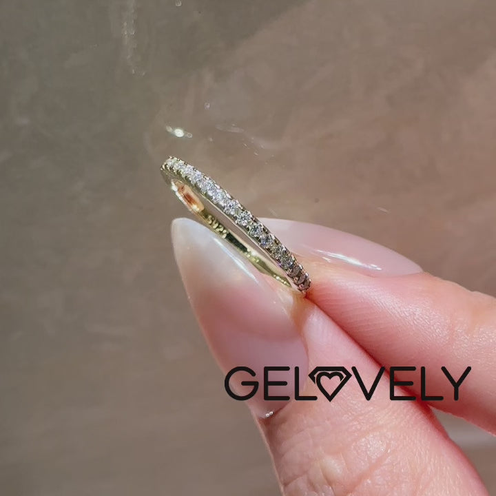 Crafted with precision and attention to detail, this ring is a beautiful symbol of your love and commitment. Whether you're celebrating a milestone anniversary or simply want to express your love, the Gelovely moissanite round cut half halo yellow gold anniversary ring is a perfect choice.