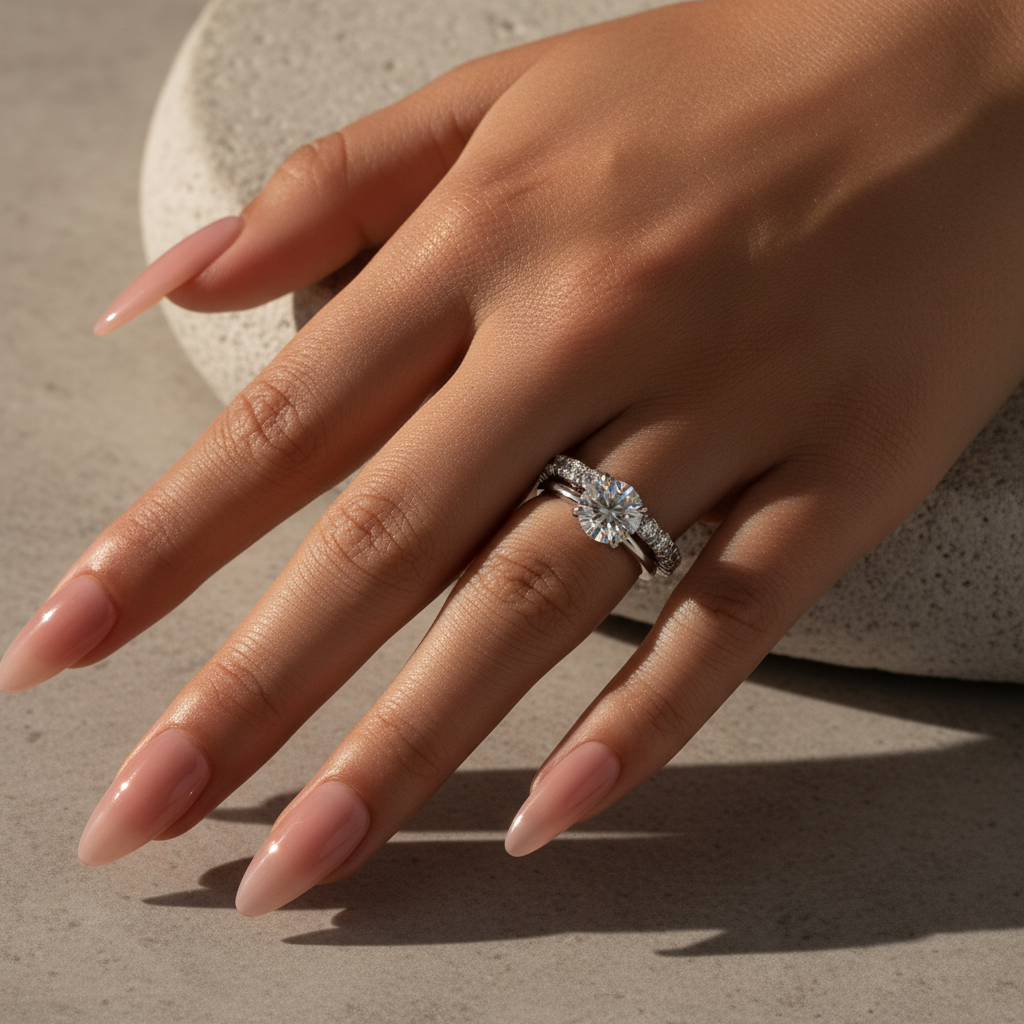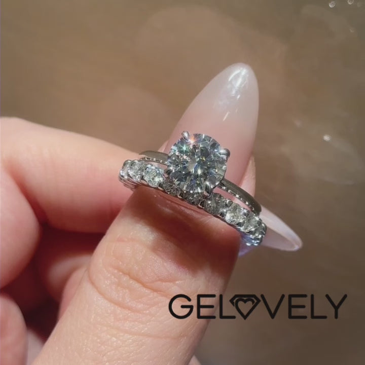 Design Inspiration: Inspired by the harmonious blend of timeless elegance and contemporary allure, this Gelovely wedding ring set reimagines classic romance through a modern lens. The design celebrates the brilliance of moissanite—a gemstone revered for its ethical origins and dazzling fire—crafted into a flawless 2.0-carat round cut center stone. Its round shape, a symbol of infinite love and unity, is elevated by a delicate claw setting that allows maximum light to dance across the stone’s Excellent-cut facets, amplifying its D-color purity and VVS1 clarity.