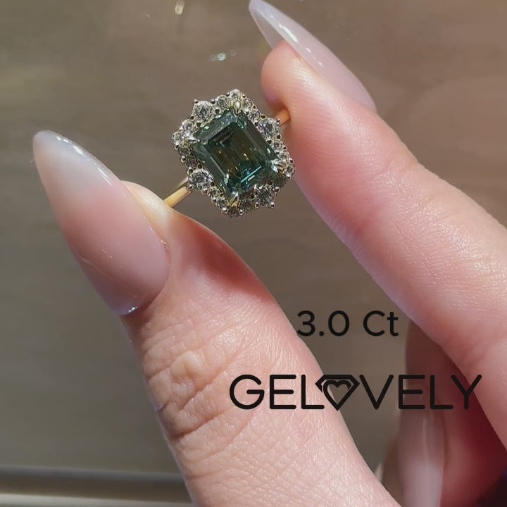 Design Inspiration: The design inspiration for the Gelovely Moissanite engagement ring blends modern elegance with timeless charm. The emerald cut center stone embodies sophistication, reflecting light from its numerous facets, symbolizing the brilliance of love.