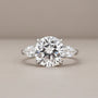 Moissanite 4.0 Ct Round Cut White Gold Engagement Ring with Pear Cut Side Stone